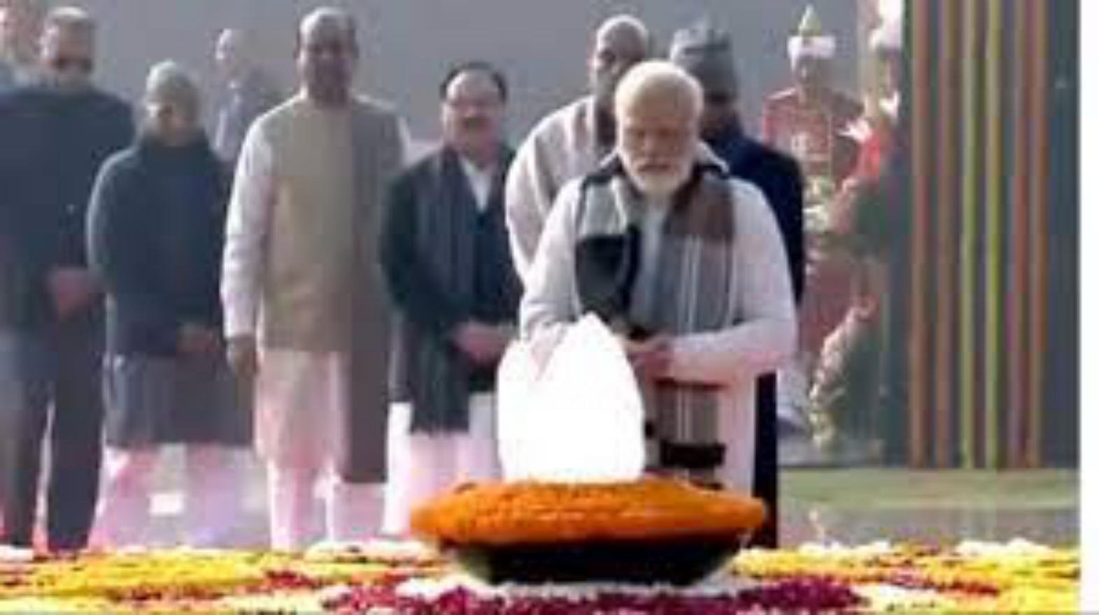 प्रधानमंत्री नरेंद्र मोदी ने पूर्व प्रधानमंत्री अटल बिहारी वाजपेयी की जयंती पर ‘सदैव अटल’ स्मारक पर पहुंचकर उन्हें पुष्पांजलि अर्पित की। पीएम के साथ रक्षा मंत्री राजनाथ सिंह, भाजपा अध्यक्ष नेपी नड्डा, केंद्रीय मंत्री निर्मला सीतारमण, अश्विनी वैष्णव, अनुराग ठाकुर और अन्य नेताओं ने पूर्व प्रधानमंत्री को पुष्पांजलि अर्पित की।