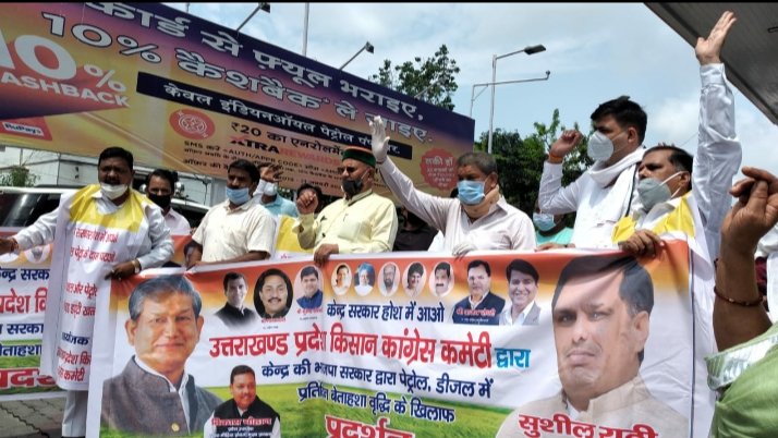 इस अवसर पर उत्तराखण्ङ प्रदेश किसान कांग्रेस कमेटी के प्रदेश अध्यक्ष श्री सुशील राठी ने कहा कि इस बड़ती महंगाई से देश का अन्नदाता सहित गरीब पिछड़े प्रभावित हुआ है ओर डीजल पेट्रोल को पीछे छोड़ रहा है ओर जनता त्रस्त है केंद्र की भाजपा सत्ता के नशे में मस्त है हमारी मांग है कि शीघ्र ही पेट्रोल डीजल के दाम कम किए जाए