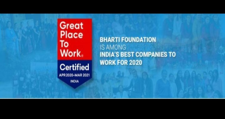 भारती फाउंडेशन को “ग्रेट प्लेस टू वर्क 2020” के रूप में प्रमाणित किया गया