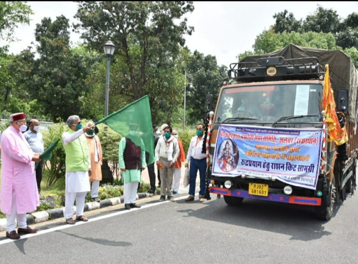 देहरादून (प्रयास उतराखंड) मुख्यमंत्री श्री त्रिवेंद्र सिंह रावत एवं पर्यटन मंत्री श्री सतपाल महाराज ने शनिवार को श्री अमरनाथ बर्फानी सेवा समिति एवं श्री बाबा केदारनाथ धाम सेवा समिति द्वारा रुद्रप्रयाग (केदारनाथ) हेतु दी गई राशन सामग्री वाहन का फ्लैग ऑफ मुख्यमंत्री आवास से किया।