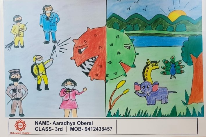 देहरादून। पब्लिक रिलेशन सोसाइटी ऑफ इंडिया (पीआरएसआई) देहरादून चैप्टर कोरोना महामारी से बचाव हेतु लगातार विभिन्न प्रकार से जनजागरूकता का कार्य कर रही है। लॉकडाउन में बच्चों की रचनात्मकता बढ़ाने के उद्देश्य से पब्लिक रिलेशंस सोसाइटी आफ इंडिया देहरादून चैप्टर द्वारा आनॅलाईन चित्रकला प्रतियोगिता का आयोजन दिनांक 12 अप्रैल, 2020 से 10, मई 2020 तक किया गया। इसकी थीम “हारेगा कोरोना- जीतेगा भारत ” रखी गयी, जिसमें पूरे देश से सात से चौदह वर्ष आयु के 10 राज्यों के 500 से भी अधिक बच्चों ने प्रतिभाग किया। बच्चे ने अपने घरों में बैठ कर ‘हारेगा कोरोना जीतेगा भारत’ विषय पर ड्राइंग तैयार कर चैप्टर द्वारा दिये गये वाट्सएप्प नम्बर या ई मेलprsidun@gmail.com में भेजी। अमित पोखरियाल, अध्यक्ष पीआरएसआई देहरादून चैप्टर ने बताया कि हमनें एक उच्च स्तरीय निर्णायक मंडल का गठन किया जिसमें ड्राइंग पेंटिंग के अनुभवी ज्ञाता बुद्धिजीवियों को रखा गया, सभी बच्चों की ड्राइंग बहुत ही उच्च कोटि की हैं, निर्णय करने में पीआरएसआई ने काफी मेहनत की है। पहले स्थान पर- दीपशिखा डे, कक्षा 6, डी.पी.एस.,