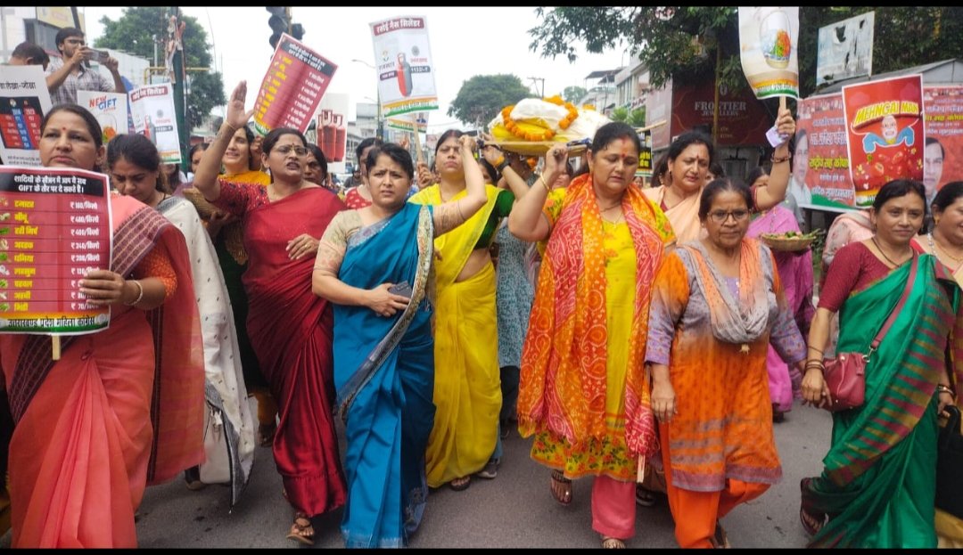 दिन प्रति दिन बढती महंगाई के खिलाफ आज उत्तराखण्ड प्रदेश महिला कांग्रेस कमेटी के कार्यकर्ताओं द्वारा विरोध प्रदर्शन के साथ प्रदेश अध्यक्ष श्रीमती ज्योति रौतेला के नेतृत्व में महंगाई के खिलाफ भाजपा सरकार की शव यात्रा निकालकर अपना विरोध दर्ज किया गया। इस अवसर पर बडी संख्या में महिला कांग्रेस कार्यकर्ता उपस्थित थे।