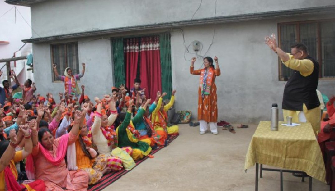 महिलाओं संग बैठक करते कैबिनेट मंत्री गणेश जोशी*