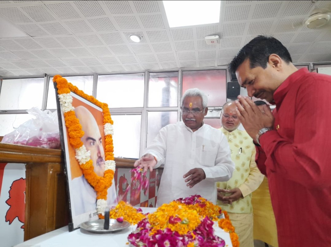 भाजपा मुख्यालय में मुखर्जी को श्रद्धांजलि अर्पित कर उनके कार्यों को याद किया गया। इस अवसर पर भाजपा अध्यक्ष मदन कौशिक ने डॉ मुखर्जी को श्रद्धांजलि अर्पित करते हिये कहा कि राष्ट्र विरोधी ताकतों ने देश से जम्मू-कश्मीर को अलग करने की साजिश रची थी, मगर डॉ. मुखर्जी ने अपना बलिदान देकर उनकी साजिश को नाकाम कर दिया। उन्होंने कहा कि डॉ. मुखर्जी के विरोध और बहादुरी की वजह से ही जम्मू-कश्मीर में प्रवेश के लिए लगाए गए परमिट सिस्टम को हटाया गया। उन्होंने कहा कि डॉ. मुखर्जी आधुनिक विश्व संत थे। वह कोलकाता विश्वविद्यालय के युवा कुलपति नियुक्त हुए। उन्होंने ब्रिटिश शासन से देश को मुक्त करने के लिए आंदोलनों में बढ़-चढ़ कर हिस्सा लिया। मुखर्जी नेहरू के मंत्रिमंडल में उद्योग मंत्री रहे, लेकिन उन्होंने जनविरोधी नीतियों की वजह से कांग्रेस को छोड़ दिया और 1951 में भारतीय जनसंघ की स्थापना की, जिसकी मौजूदा दौर में भाजपा के रूप में देश के कोने-कोने में पहुंच है।