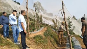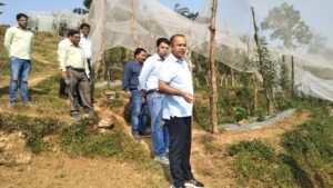 प्रयास उत्तराखंड न्यूज पिथौरागढ़ 11 जून 2023- चार दिवसीय जनपद भ्रमण पर पहुंचे सचिव कार्मिक एवं सतर्कता, उच्च शिक्षा, सूचना प्रौद्योगिकी, मंत्री परिषद, सूचना श्री शैलेष बगौली ने रविवार को जनपद के विकासखण्ड विण के अंतर्गत स्थित ग्राम सिन्थौली पहुंचकर किसान मनोज खड़ायत के सेब के बागान का स्थलीय निरीक्षण किया। इस दौरान किसान मनोज खड़ायत ने सेब के सपोर्ट सिस्टम टेलिस की मांग की। जिस पर सचिव ने मुख्य विकास अधिकारी वरुण चौधरी को निर्देश दिये कि यदि सेब के सपोर्ट सिस्टम हेतु मदद संभव हो सके तो की जाय।