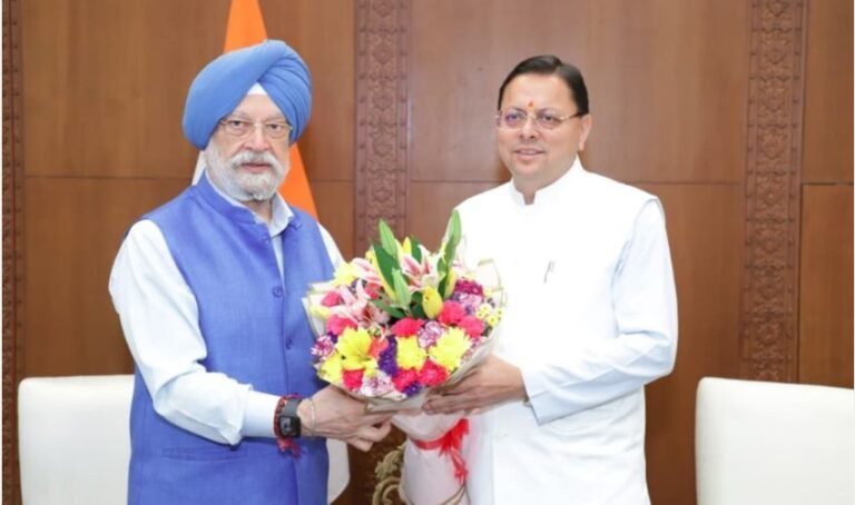 देहरादून/नई दिल्ली। मुख्यमंत्री पुष्कर सिंह धामी ने केंद्रीय पेट्रोलियम एवं प्राकृतिक गैस मंत्री हरदीप सिंह पुरी से नई दिल्ली स्थित कर्तव्य भवन में भेंट कर उत्तराखण्ड की भौगोलिक परिस्थितियों एवं आपदाजन्य संवेदनशीलता के दृष्टिगत विभिन्न महत्वपूर्ण विषयों पर विस्तृत चर्चा की।