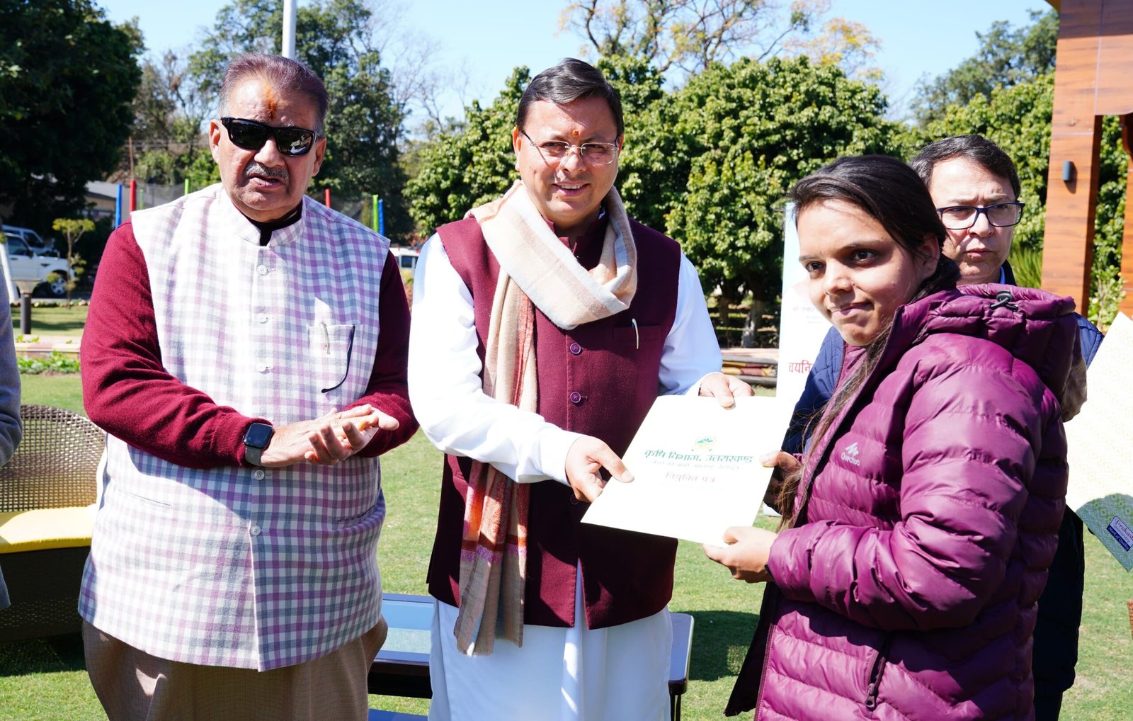 इस अवसर पर महानिदेशक कृषि डॉ0 रणजीत सिंह चौहान, निदेशक कृषि एवं कृषि कल्याण श्री के0पी0 पाठक, संयुक्त निदेशक कृषि श्री दिनेश कुमार, उप निदेशक कृषि, श्री नवीन काण्डपाल, श्री पी0एम0 बिष्ट नियुक्ति पत्र प्राप्त करने वाले युवा सहित सम्बन्धित पदाधिकारी एवं अधिकारीगण उपस्थित थे।