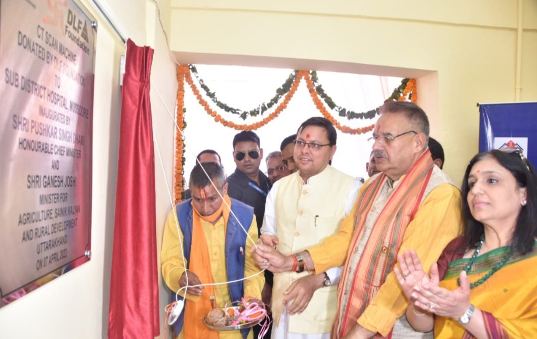 मुख्यमंत्री श्री पुष्कर सिंह धामी ने मसूरी उप चिकित्सालय के लिए डी.एल.एफ द्वारा दिए गए सहयोग के लिए आभार व्यक्त किया। मुख्यमंत्री ने उप चिकित्सालय मसूरी में आधुनिक सी.टी स्कैन मशीन,आर्म मशीन, इमरजेंसी वेंटिलटर का लोकार्पण किया।