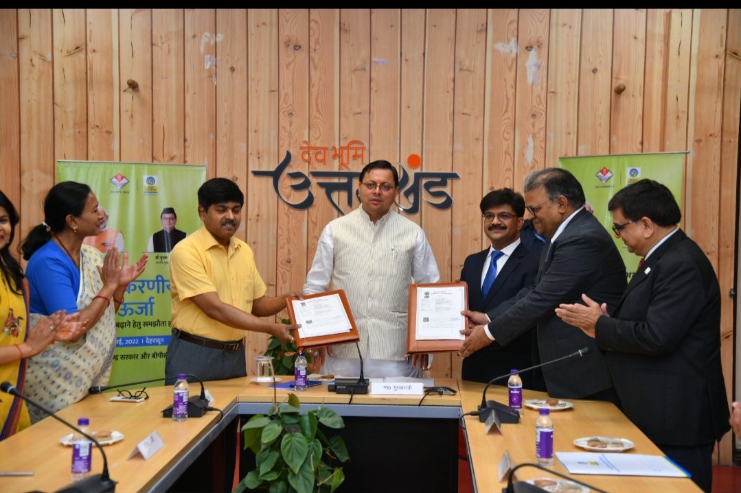 उत्तराखण्ड सरकार की ओर से सचिव ऊर्जा श्री आर मीनाक्षी सुन्दरम और भारत पेट्रोलियम कारपोरेशन लिमिटेड की ओर से मुख्य महाप्रबंधक नवीनीकरण ऊर्जा श्री शैली अब्राहम व अधिशासी निदेशक श्री अमित गर्ग ने हस्ताक्षर किए।
