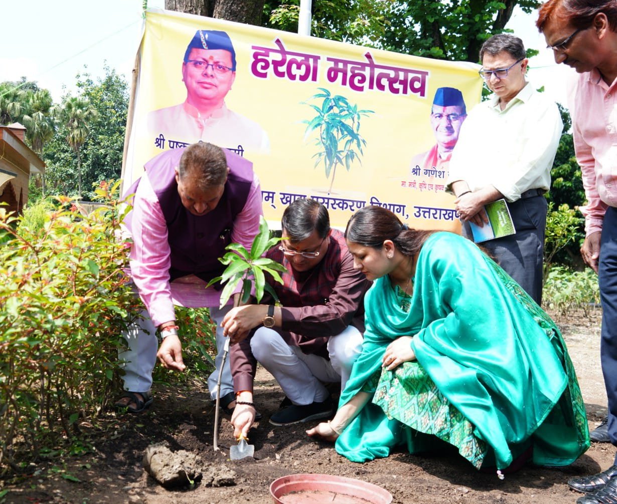 हरेला पर्व के अवसर पर श्रीमती गीता पुष्कर धामी एवं कैबिनेट मंत्री श्री गणेश जोशी ने भी वृक्षारोपण किया। इस अवसर पर मुख्यमंत्री आवास में विभिन्न प्रजातियों के 51 पौधे लगाए गए।
