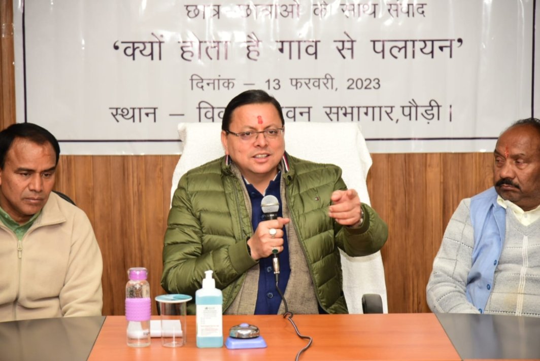 मुख्यमंत्री श्री पुष्कर सिंह धामी ने सोमवार को विकास भवन, पौड़ी में एन०सी०सी० कैडेट्स व अन्य प्रतिभाशाली स्कूली छात्र-छात्राओं के साथ “क्यों होता है गाँव से पलायन“ विषय पर संवाद कार्यक्रम में प्रतिभाग किया। जानिए