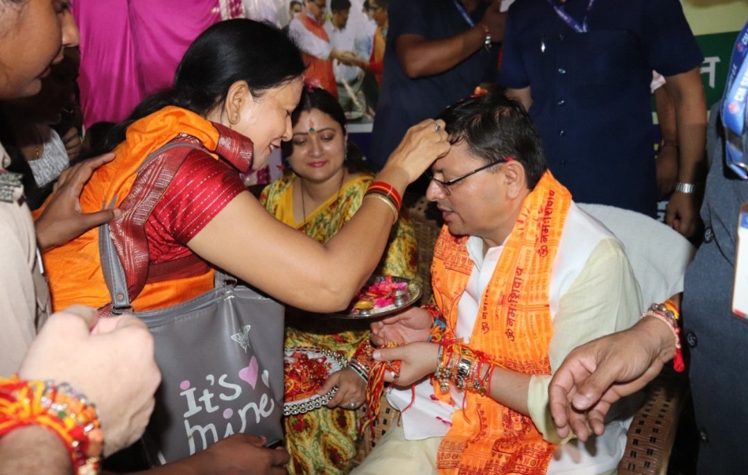 मुख्यमंत्री श्री पुष्कर सिंह धामी ने गुरूवार सांय को खटीमा में आयोजित रक्षाबन्धन मिलन कार्यक्रम में प्रतिभाग किया। कार्यक्रम में बड़ी संख्या में आयी महिलाओं ने मुख्यमंत्री को राखी बांधी तथा तथा उनके दीर्घ जीवन की कामना की।