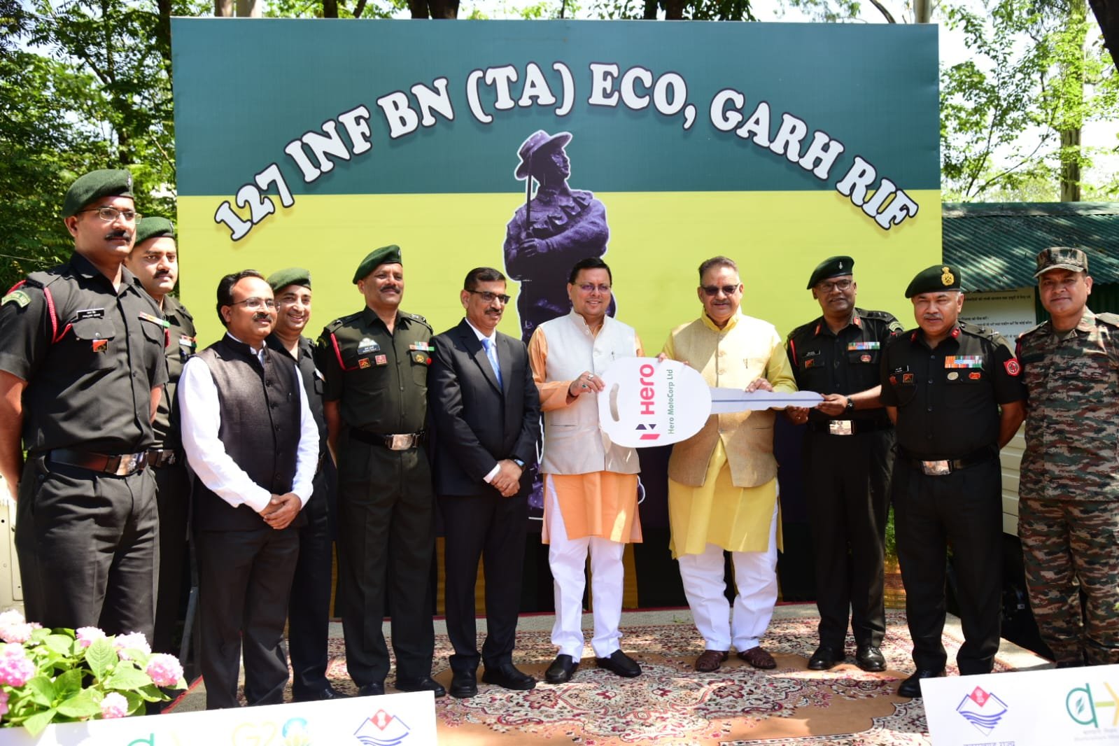 इस अवसर पर जी.ओ.सी उत्तराखण्ड सब एरिया मेजर जनरल संजीव खत्री, कर्नल रोहित श्रीवास्तव, हीरो मोटोकॉर्प के प्लांट हेड श्री यशपाल सरदाना एवं ईको टास्क फोर्स के सदस्य उपस्थित थे।