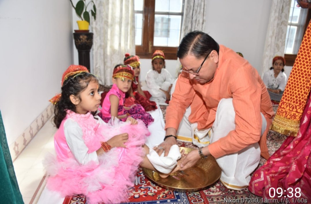 प्रयास उत्तराखंड न्यूज देहरादून : मुख्यमंत्री श्री पुष्कर सिंह धामी ने मंगलवार को शारदीय नवरात्र की नवमी के पावन अवसर पर मुख्यमंत्री आवास में विधि विधान से कन्या पूजन किया। उन्होंने नौ दुर्गा की प्रतीक नौ कन्याओं को भोजन कराया। मुख्यमंत्री ने निर्मल बुद्धि एवं अष्ट सिद्धियों की प्रदाता माँ सिद्धिदात्री से प्रदेश एवं प्रदेशवासियों की सुख समृद्धि की कामना भी की।