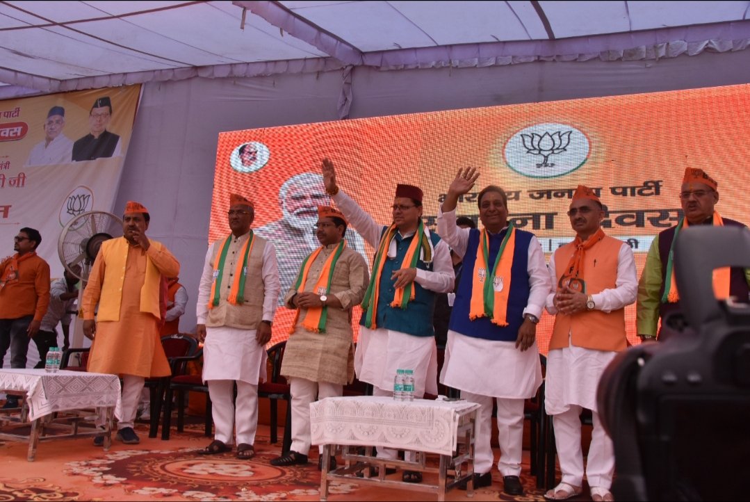 मुख्यमंत्री श्री पुष्कर सिंह धामी ने सभा को संबोधित करते हुए भारतीय जनता पार्टी के स्थापना दिवस की शुभकामनाएं दी। उन्होंने कहा हमारा संगठन राष्ट्र प्रथम, संगठन द्वितीय और व्यक्ति अंतिम के सिद्धांत पर चलता है। डॉ.श्यामा प्रसाद मुखर्जी ने राष्ट्रवाद की भावना पूरे देश में जगाई। डॉ. श्यामा प्रसाद मुखर्जी, पंडित दीनदयाल, भारत रत्न श्री अटल बिहारी वाजपेई के सपनों को आज माननीय प्रधानमंत्री श्री नरेंद्र मोदी के नेतृत्व में पूरा किया जा रहा है ।