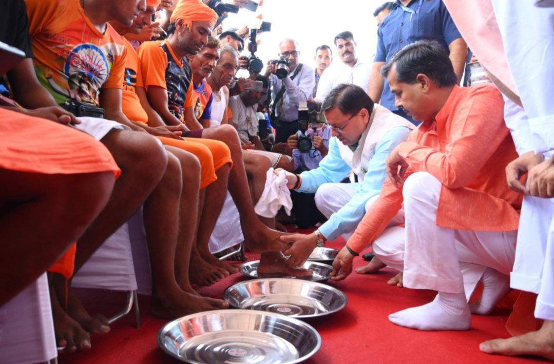 प्रयास उत्तराखंड न्यूज( दीपक धीमान) हरिद्वार ; मुख्यमंत्री श्री पुष्कर सिंह धामी ने बुधवार को हरिद्वार में डामकोठी के निकट गंगा घाट पर शिव भक्तों का स्वागत किया। उन्होंने कांवड़ यात्रा में देवभूमि उत्तराखण्ड आये शिव भक्तों के चरण धोकर एवं गंगाजली देकर स्वागत किया। उन्होंने कहा कि मां गंगा की कृपा सभी पर बनी रहे। इस अवसर पर मुख्यमंत्री ने डामकोठी में वृक्षारोपण भी किया।