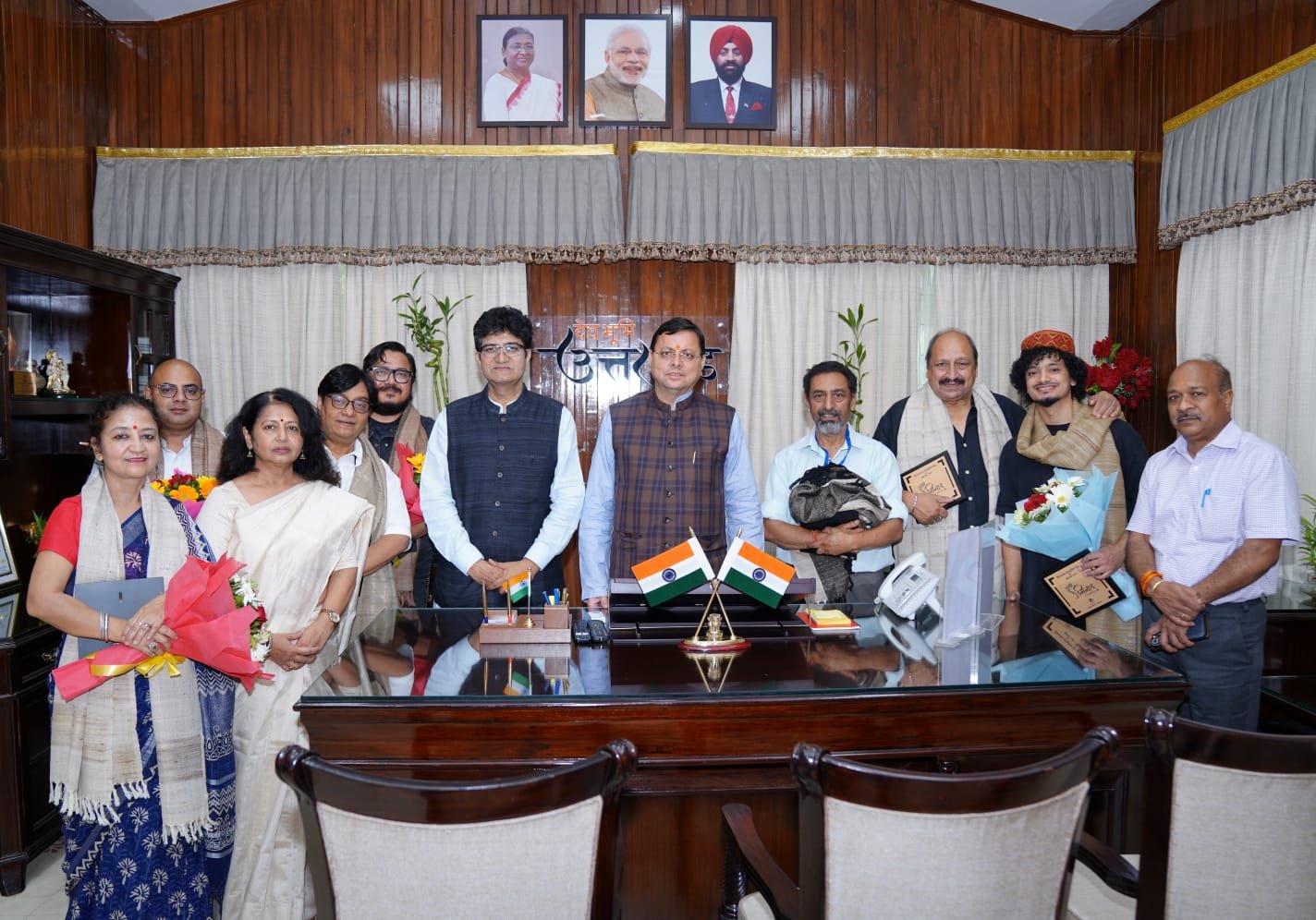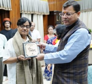 प्रयास उत्तराखंड न्यूज देहरादून : मुख्यमंत्री श्री पुष्कर सिंह धामी से सोमवार को मुख्यमंत्री कैम्प कार्यालय में केन्द्रीय फिल्म प्रमाणन बोर्ड के अध्यक्ष एवं प्रसिद्ध गीतकार श्री प्रसून जोशी ने भेंट की। इस अवसर पर कला एवं साहित्य क्षेत्र से जुड़े श्री सुधीर पाण्डे, श्रीमती शालिनी शाह, श्री प्रवीन काला, श्री अमित जोशी श्री राजेश शाह, श्री वरूण ढ़ौढ़ियाल एवं श्री गौरव ने भी भेंट की। मुख्यमंत्री ने सभी कलाकारों को सम्मानित भी किया।