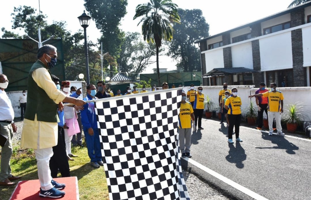 समाज में कोविड-19 से लङाई के जज्बे को बढ़ाने के लिए मुख्यमंत्री श्री त्रिवेन्द्र सिंह रावत की पहल पर ‘कोरोना वारियर से विनर’ कार्यक्रम प्रारंभ किया गया है। इसमें खेल विभाग के तत्वावधान में कोरोना से ठीक हुए लोगों के लिए अनेक खेल स्पर्धाएं आयोजित की गई हैं। इसी के तहत रविवार को मुख्यमंत्री ने सीएम आवास से वाकाथन का फ्लैग ऑफ किया और बैडमिंटन का मैच खेला।