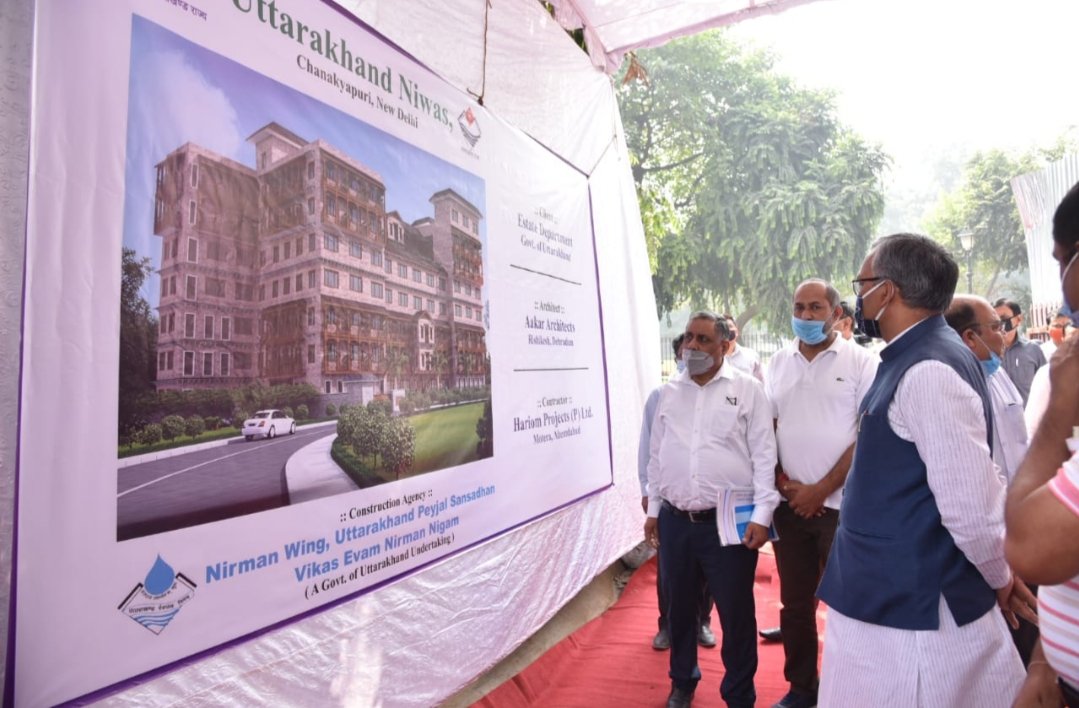 मुख्यमंत्री ने कहा कि निर्माण कार्य, गुणवत्ता बनाए रखते हुए तय की गई समय सीमा में पूरा करना सुनिश्चित किया जाए। बताया गया कि 3, गोपिनाथ बारदोलाई मार्ग, चाणक्यपुरी नई दिल्ली में जून 2020 से उत्तराखण्ड निवास का काम शुरू किया गया। भवन में तीन बेसमेन्ट होंगे। है। भवन में भू तल को सम्मिलित करते हुए कुल सात तल बनाए जाएंगे। भवन उत्तराखण्ड वास्तुकला शैली में बनाया जायेगा। यह पांच सितारा ग्रीन भवन है। इसका अपना सीवेज सोधन संयत्र होगा। भवन में 50 किलो वाट क्षमता का सोलर पावर प्लांट भी है। भवन का वास्ताविक निर्माण कार्य दिनांक जून 2020 से प्रारम्भ किया गया। भवन को माह दिसम्बर 2021 तक पूर्ण कर दिया जायेगा तथा रंगरोगन, फिनिशिगं का काम मार्च 2022 तक पूरा किया जाना है। सभी जरूरी स्वीकृतियां प्राप्त कर ली गई है। इस दौरान मुख्य सचिव श्री ओमप्रकाश, विशेष सचिव मुख्यमंत्री डाॅ पराग मधुकर धकाते, इंजीनियर वी0सी0 पुरोहित, प्रबन्ध निदेशक, उत्तराखण्ड पेयजल निगम, श्रीमती इला गिरी अपर स्थानिक आयुक्त, श्री रंजन मिश्रा वरिष्ठ व्यवस्था अधिकारी सहित अन्य अधिकारी उपस्थित थे।।