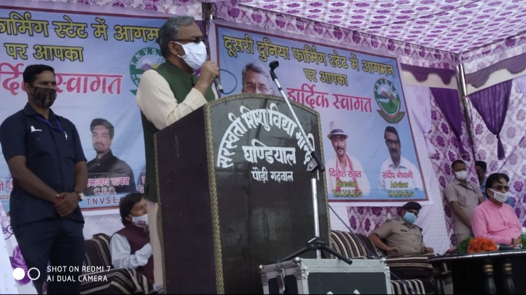 मुख्यमंत्री श्री त्रिवेंद्र सिंह रावत ने शनिवार को घंडियाल, पौड़ी गढ़वाल में टी. एन. वी. एस. ई ग्रुप द्वारा उत्पादित पहाड़ी उत्पादों के प्लांटेशन एवं पायलेट प्रोजेक्ट का निरीक्षण किया। इस अवसर पर उन्होंने किनवा की बुआई एवं स्वावलंबन स्वयं सहायता के उत्पादों का निरीक्षण भी किया।