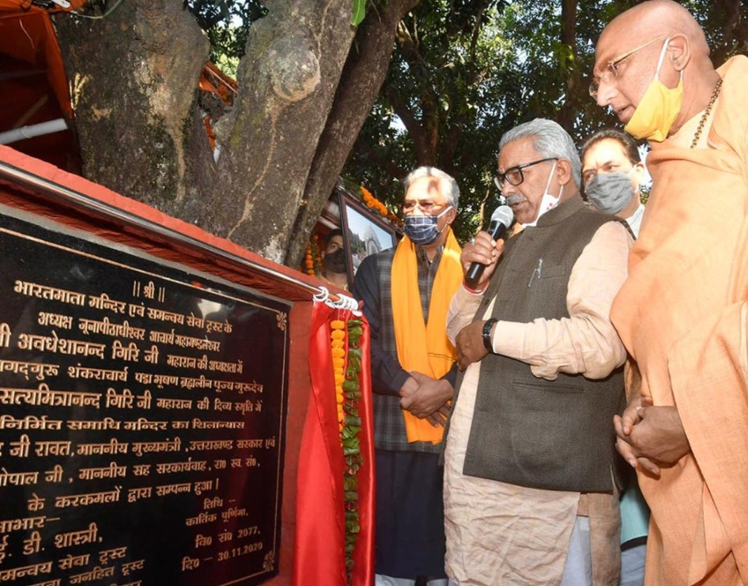 मुख्यमंत्री श्री त्रिवेन्द्र ने कहा कि स्वामी सत्यमित्रानन्द गिरिजी महाराज प्रेरणादायी व्यक्तित्व के धनी थे। उन्होंने भारत माता ट्रस्ट मन्दिर की स्थापना की। वह एक बहुत बड़े सन्त थे। उनको शंकराचार्य की उपाधि मिली और उन्होंने उसका परित्याग किया और जो धर्मदण्ड है, उसे उन्होंने मां गंगा को समर्पित किया। वे आध्यात्म व व्यवहार दोनों के समन्वयक थे। आज उनकी याद में स्मृति मन्दिर का शिलान्यास किया गया है, जो युगों-युगों तक हमारे आने वाली पीढ़ी को प्रेरणा देगा।