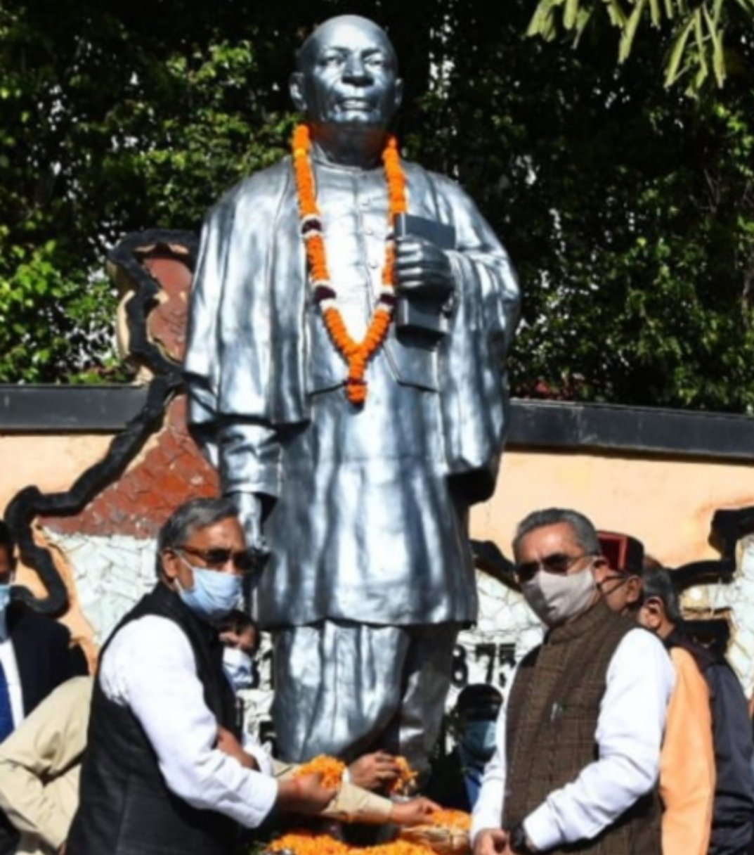 देहरादून- मुख्यमंत्री श्री त्रिवेन्द्र सिंह रावत ने लौह पुरूष सरदार बल्लभ भाई पटेल की जयंती पर घंटाघर देहरादून स्थित उनकी प्रतिमा पर माल्यार्पण किया। मुख्यमंत्री श्री त्रिवेन्द्र ने कहा कि सरदार पटेल ने स्वतंत्रता के लिए देश के संघर्ष में अग्रणी भूमिका निभाई एवं देश की आजादी के बाद प्रथम गृह मंत्री बने। उन्होंने देशी रियासतों के एकीकरण में अहम भूमिका निभाई।
