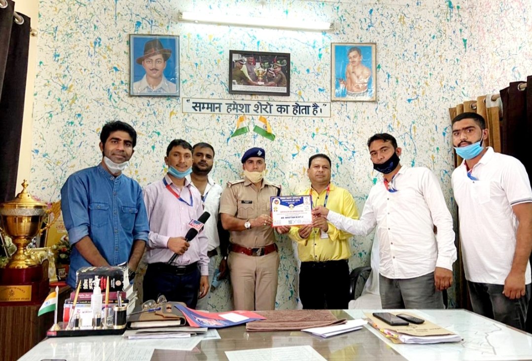 आज दिनाक 15/09/20 को ह्यूमन राइट्स जर्नलिस्ट एसोसिएशन द्वारा थाना पटेल नगर कोतवाली के कोतवाल प्रदीप बिष्ट जी, क्लेमनटाउन थाने के पुलिस अधिकारी नरोत्तम बिष्ट जी, आईएसबीटी के चौकी प्रभारी विवेक भंडारी जी, बाजार चौकी प्रभारी नवीन जोशी जी को कोरोना वारियर्स का सर्टिफिकेट देकर सम्मानित किया।