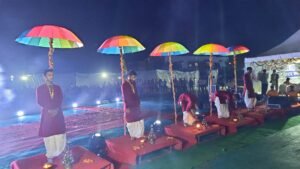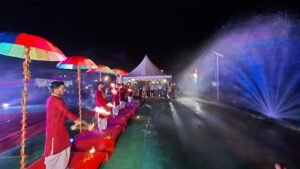 गुरूवार को प्रथम दिन के खेल समाप्त होने के उपरान्त नमामि गंगे प्रोजेक्ट के अन्तर्गत गंगा आरती, सांस्कृतिक कार्यक्रम एवं लेजर लाइट और साउण्ड शो का आयोजन किया गया।
