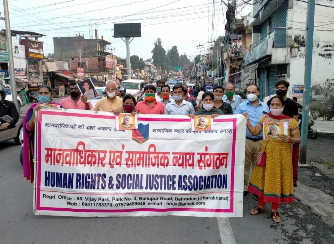 11/9/2020 प्रयास उत्तराखंड/ मानवाधिकार एवं सामाजिक न्याय संगठन द्वारा चकराता रोड यमुना कॉलोनी में विनस बेकरी से लेकर किशन नगर चौक तक संगठन द्वारा विरोध प्रदर्शन किया गया । इसअवसर पर संगठन की प्रदेश अध्यक्ष श्री मति मधु जैन ने कहा कि महाराष्ट सरकार द्वारा ये जो कायराना हरकत की गई है उसके लिए उनको पहाड़ की बेटी कंगना राणावत से माफी मांगनी होगी और जो सम्मान एक महिला को दिया जाता है वो देना होगा इस अपमान की मैं कड़े शब्दों में निंदा करती हूं । यह बहुत ही शर्मनाक कृत्य है जिसका आकलन नही किया जा सकता सरकार घर बसाती है इन लोगों ने बसे बसाये घर को उजाड़ दिया।इस मौके पर भारतीय जनता युवा मोर्चा के प्रदेश उपाध्यक्ष श्री सचिन गुप्ता जी ने कहा कि इस कुकृत्य की सभी राज्यों में निंदा की जा रही है ये बहुत शर्म की बात है।