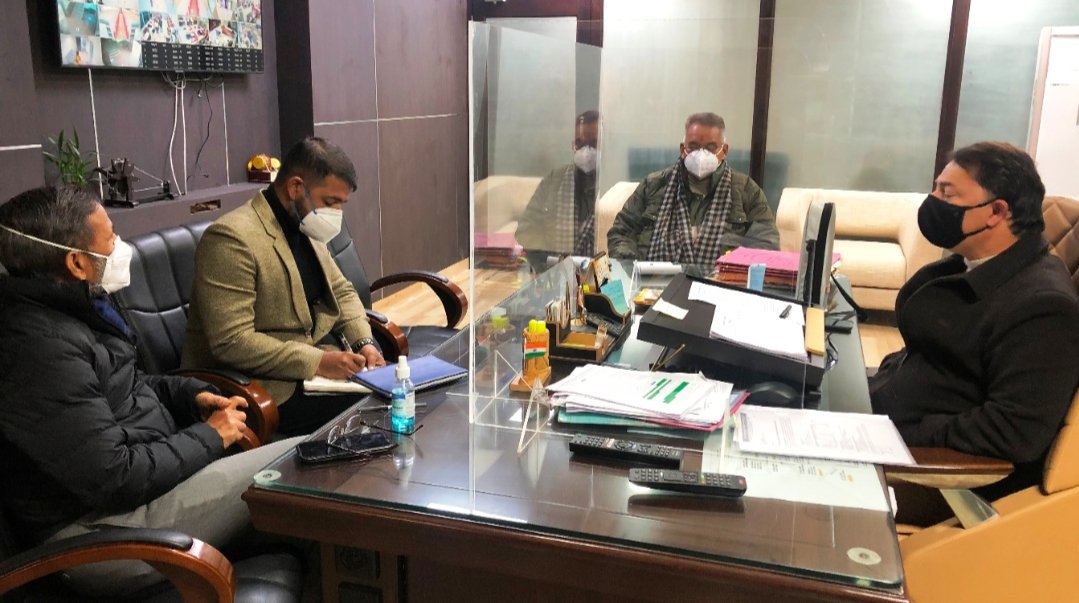 प्रयास उत्तराखंड देहरादून 30 दिसम्बर: बुधवार को मसूरी विधायक गणेश जोशी ने देहरादून के ट्रांसपोर्ट नगर स्थित एमडीडीए कार्यालय में प्राधिकरण के उपाध्यक्ष रणवीर सिंह चैहान से मुलाकात कर मसूरी के जीरो प्वाइंट में निर्मित होने वाली पार्किंग के कार्य को अतिशीघ्र प्रारम्भ करने एवं सुवाखोली में माॅ भुवनेश्वरी देवी मंदिर तक सड़क निर्माण एवं अन्य समस्याओं के समाधान पर वार्ता की।