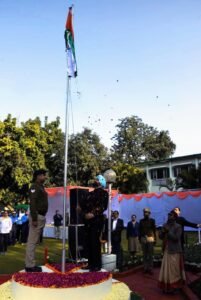 मुख्य सचिव डॉ. एस.एस. संधु ने गुरूवार को गणतंत्र दिवस के अवसर पर सचिवालय में राष्ट्रीय ध्वज फहराया। इस अवसर पर उन्होंने प्रदेशवासियों और सचिवालय के सभी अधिकारियों-कर्मचारियों को गणतंत्र दिवस की बधाई एवं शुभकामनाएं दीं। इस अवसर पर अपने सम्बोधन में मुख्य सचिव ने कहा कि भारत की आजादी के बाद, देश का संविधान बनाने वालों ने यह निर्णय लिया कि देश को गणतांत्रिक देश बनाना है। इसके बाद संविधान बनाकर इसे 26 जनवरी, 1950 को लागू किया गया। हमारे संविधान का एक महत्त्वपूर्ण अंश यह भी है कि भारत के प्रत्येक नागरिक को समान अवसर का अधिकार प्राप्त है।