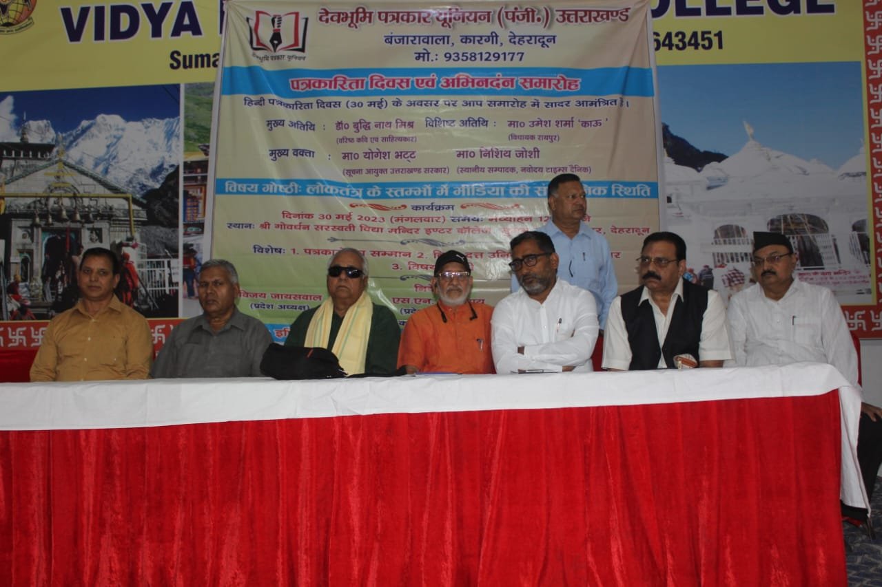 पत्रकारिता दिवस पर देवभूमि पत्रकार यूनियन ने दो दर्जन पत्रकारों को किया सम्मानित