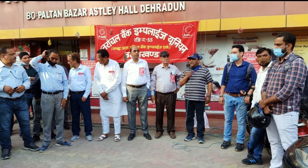 प्रयास उत्तराखंड देहरादून : दिनांक 25.03.2022 को शाम 5:00 बजे पंजाब नैशनल बैंक, एस्ले हाल के समक्ष विशाल प्रदर्शन किया गया। इस प्रदर्शन vec 4 ए०आई०बी०ई०ए० और ए०आई०बी०ओ०ए० से संबद्ध कर्मचारियों ने भाग लिया। प्रदर्शन में 28 व 29 मार्च 2022 की आम हड़ताल को सफल बनाने का आह्वान किया गया। कर्मचारियों की मांगे निम्न प्रकार हैं : 1. बैंकों का निजीकरण नहीं होना चाहिये