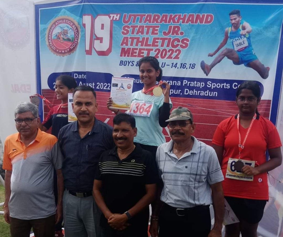 सबकी प्यारी बिटिया ने बड़ों के आशीर्वाद और दोस्तों में छोटे भाइयों के प्यार और दुआ से एक बार फिर रुड़की का नाम पूरे उत्तराखंड में रोशन करते हुए स्टेट एथलेटिक्स जैवलिन अंडर-14 में फर्स्ट पोजीशन ला कर गोल्ड मेडल हासिल किया