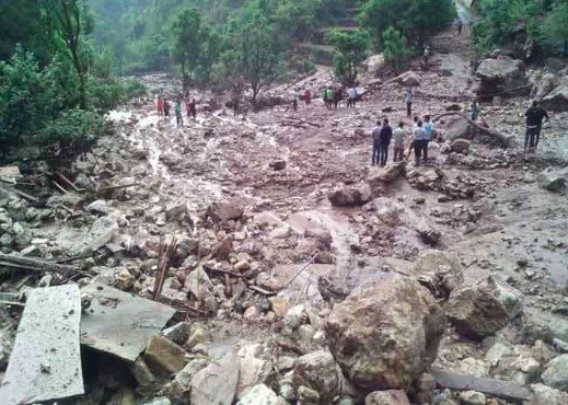 कई खेत और मकान मलबे में दब गए हैं।