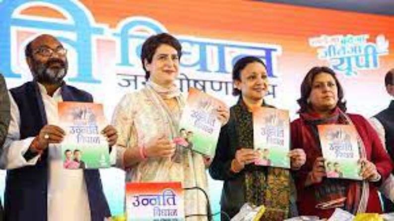 उत्तर प्रदेश विधानसभा चुनाव 2022 के लिए पहले चरण के चुनाव से एक दिन पहले बुधवार को कांग्रेस ने भी अपना घोषणा पत्र जारी कर दिया है। पार्टी की महासचिव व उत्तर प्रदेश प्रभारी प्रियंका गांधी वाड्रा ने कांग्रेस के प्रदेश मुख्यालय पर ‘उन्नति विधान’ नामक यह घोषणा पत्र जारी किया। कांग्रेस ने इस घोषणा पत्र में किसानों और बेरोजगारों के लिए कई ऐलान किए हैं। इससे पहले पार्टी युवाओं के लिए ‘भर्ती विधान घोषणा पत्र’ और महिलाओं के लिए ‘शक्ति विधान घोषणा पत्र’ जारी कर चुकी है। इससे पहले मंगलवार को भारतीय जनता पार्टी (बीजेपी) और समाजवादी पार्टी (एसपी) अपना घोषणा पत्र जारी कर चुके हैं।